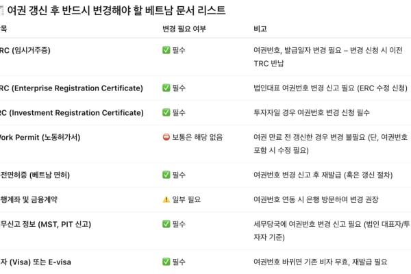 • 베트남에서 거주중에 여권을 갱신했을 경우 추가로 변경해야 하는 서류 목록 1