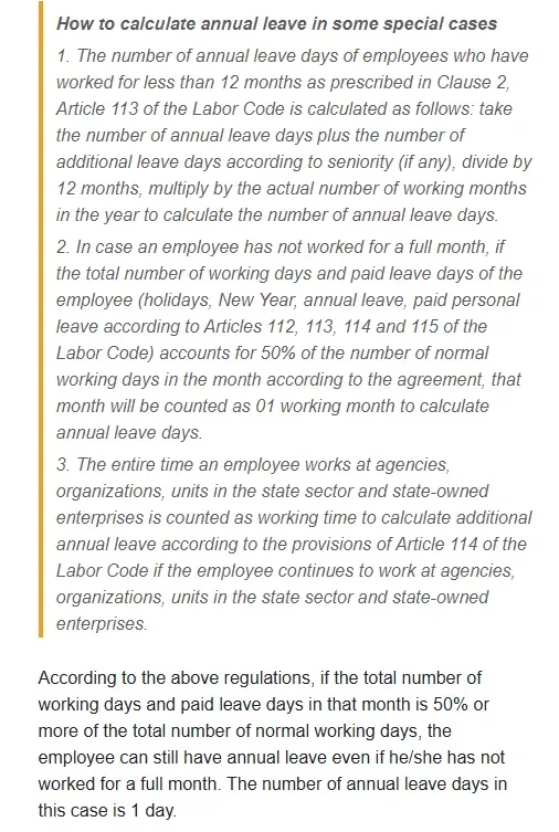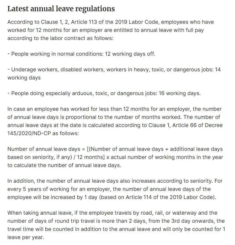 베트남 노동법 - 연차 관련