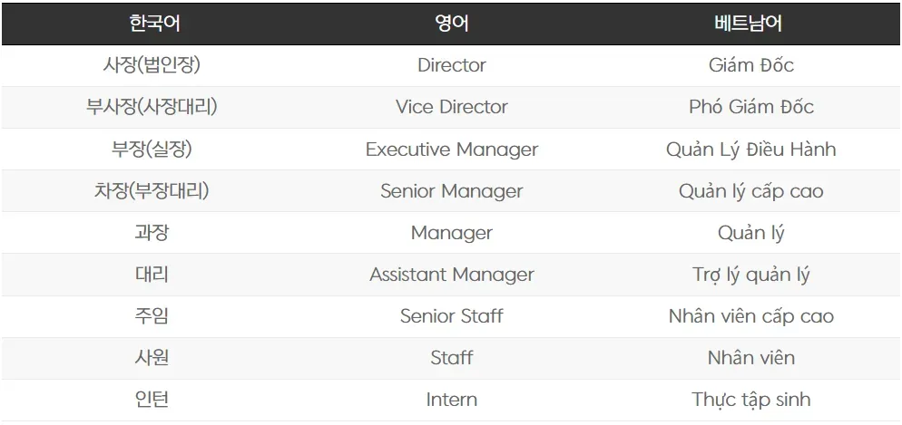 이게 큰 회사가 잘 없기도 하지만, 대부분의 경우 관리상의 문제로 그냥 간소화 시킨 직급체계를 많이 사용하기 때문이기도 하다.
