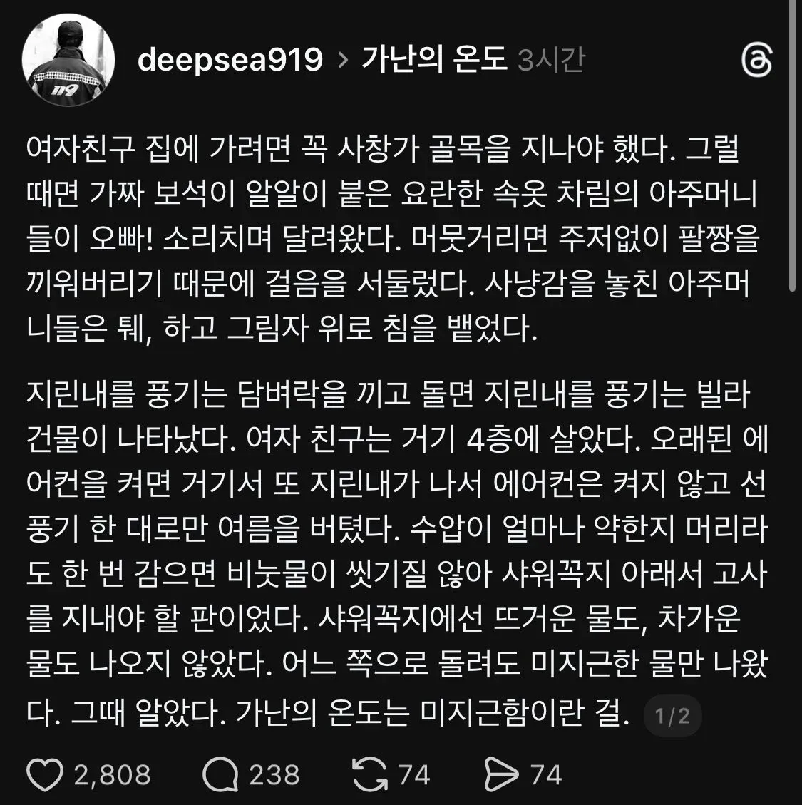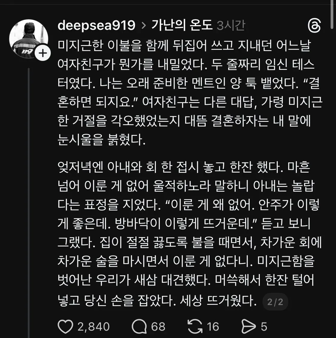 솔플마스터 10일 전 2025-11-20 17:56:59 스레드인이 느낀 가난의 온도 첨부파일 2 image.png.webp 116.7KB 4 image.png.webp 106.5KB 5