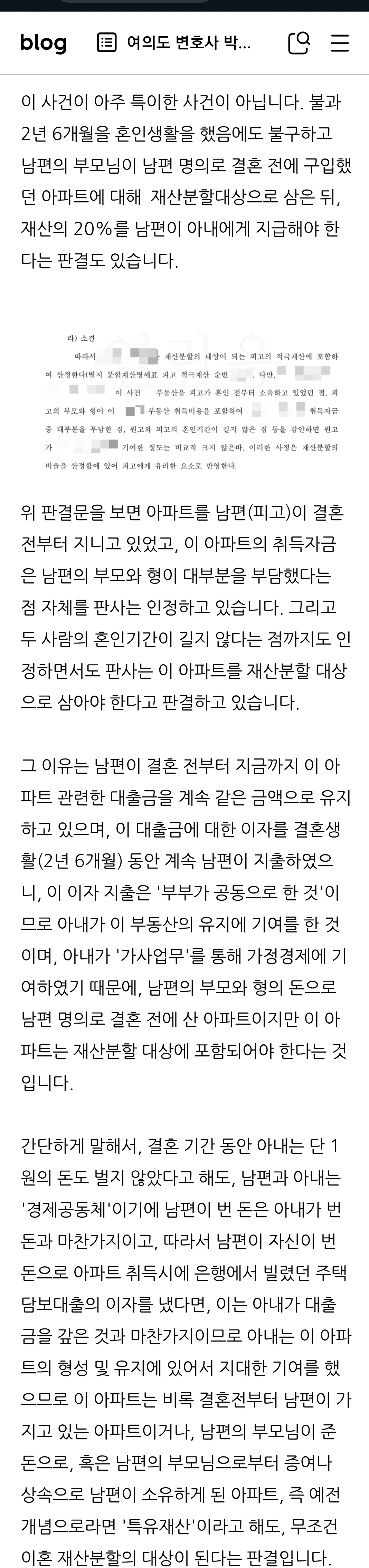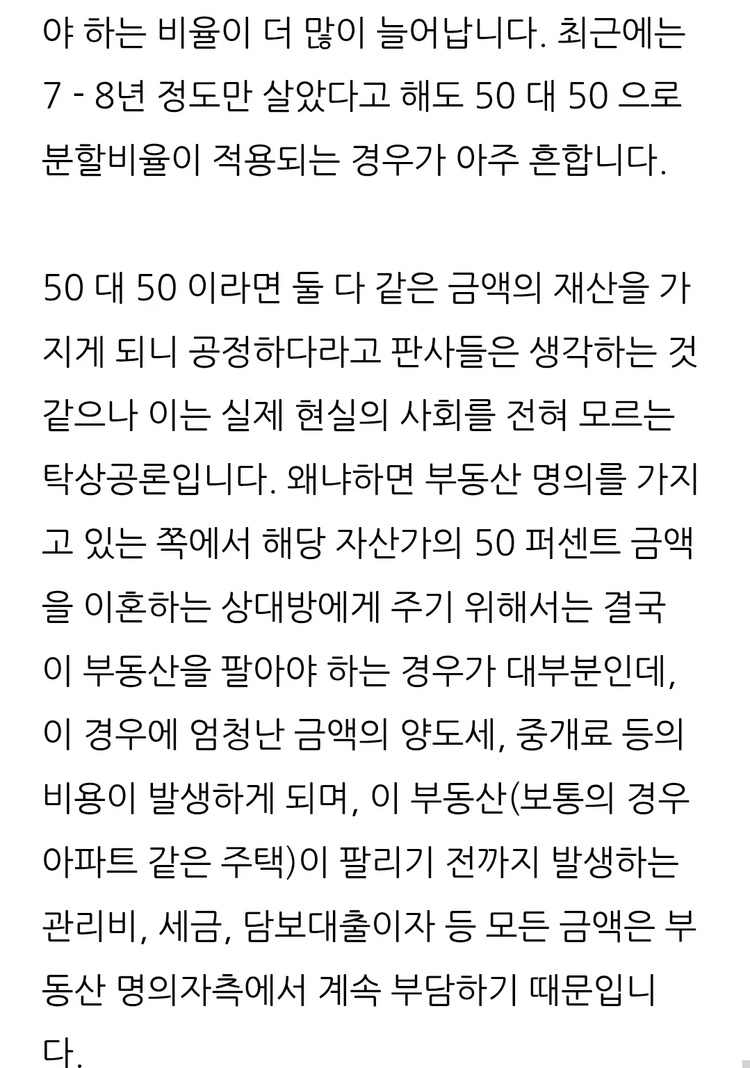 이제는 15년도 아니다. 결혼 7, 8년차부터 특유재산 포함 분할 비율이 5:5가 됨