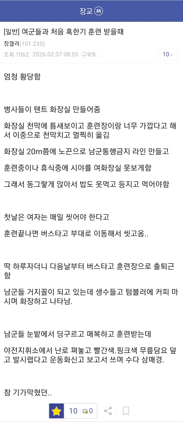 여군들 혹한기 훈련 받는거 보고 엄청 당황함