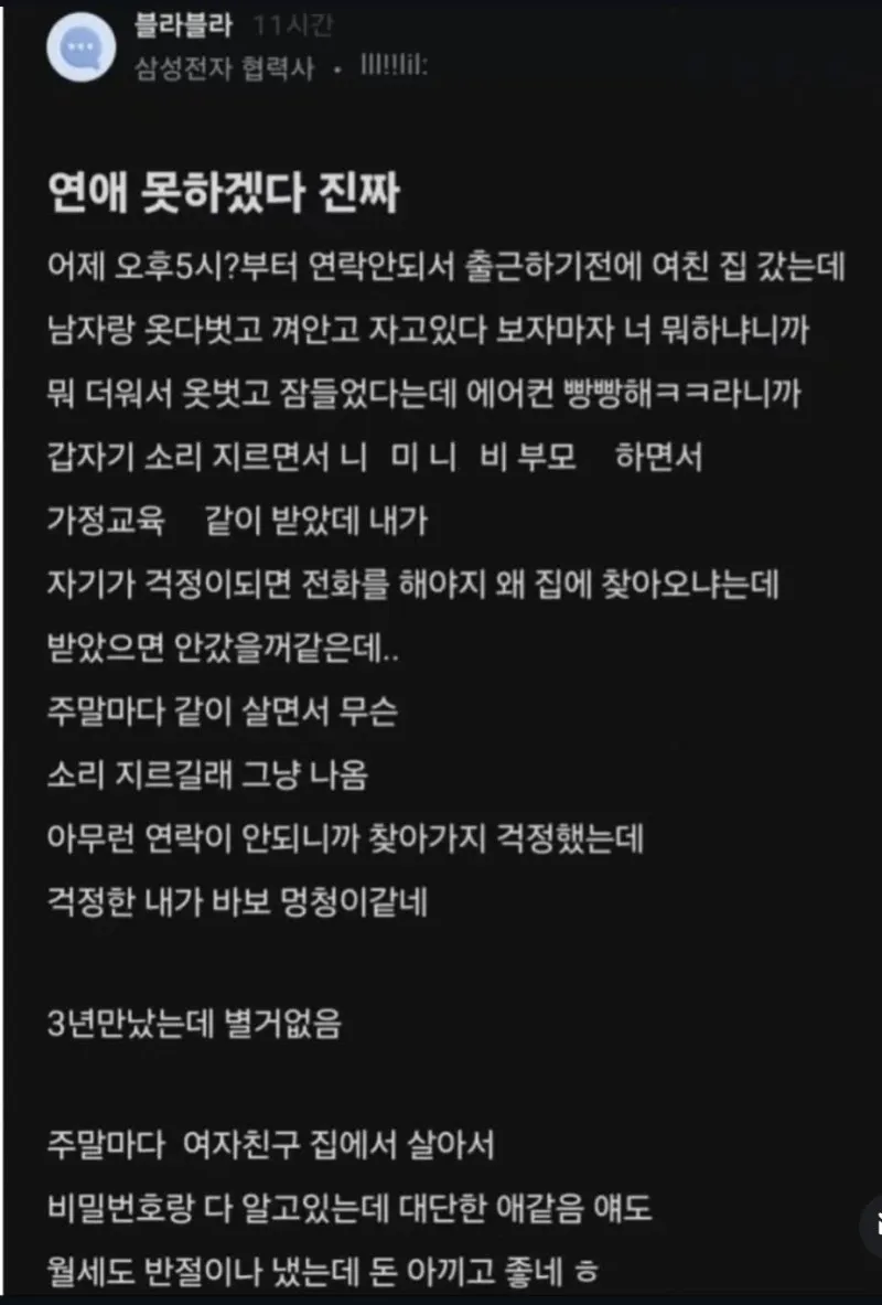 여친집에서 목격한 바람에 대한 여친의 변명수준