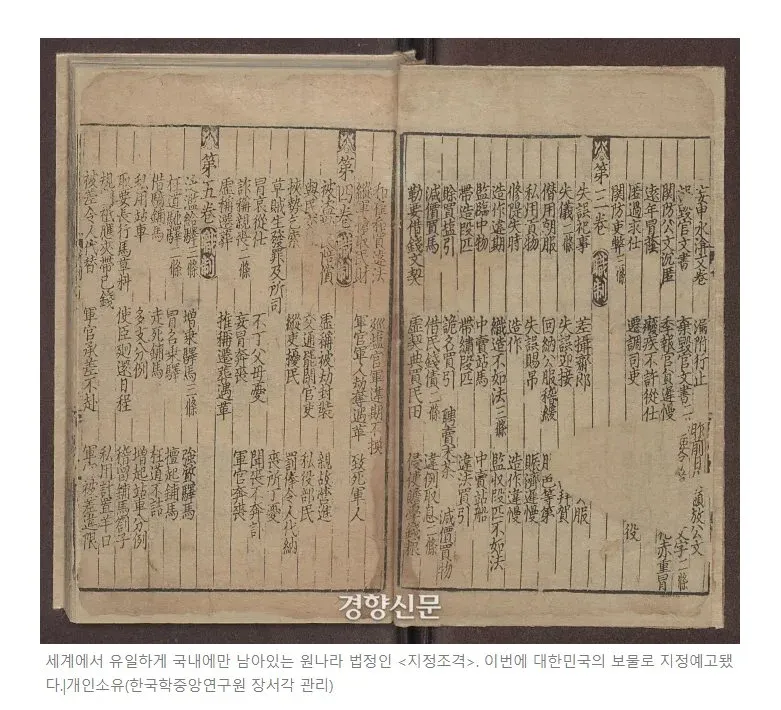 원나라가 편찬한 최후의 법전임