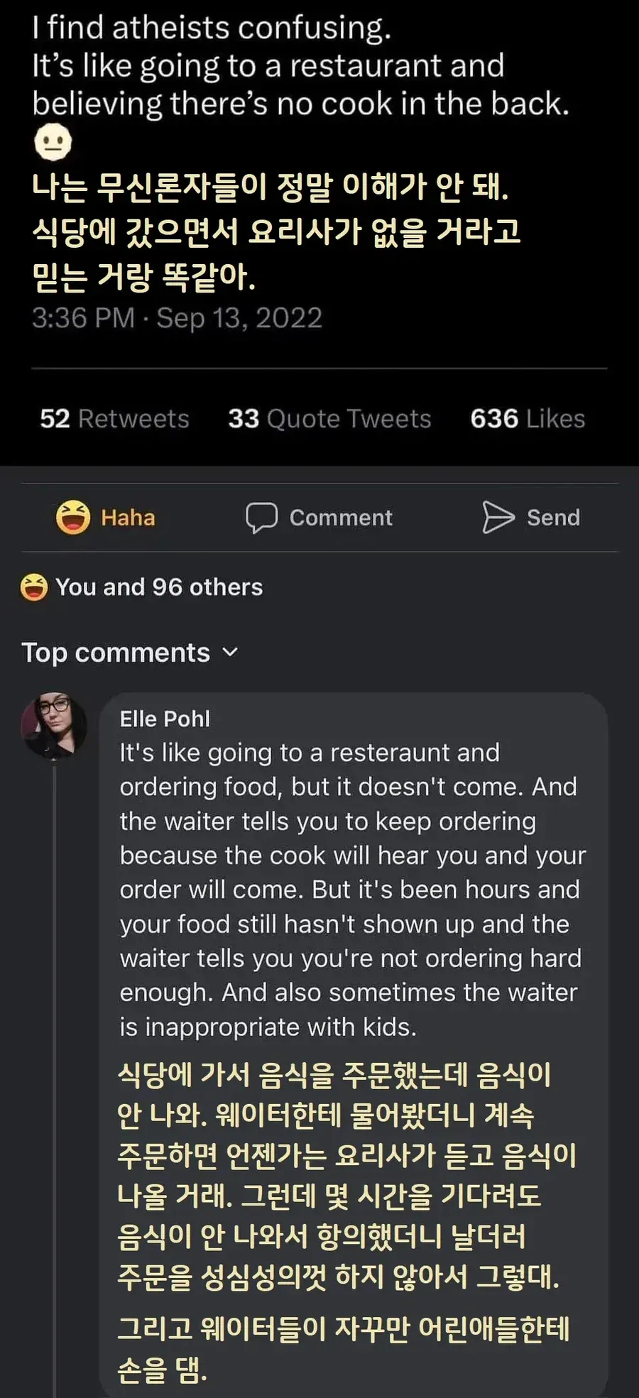 솔플마스터 1시간 전 2026-03-21 13:49:07 난 무신론자들을 이해할 수 없어 첨부파일 2 image.png.webp 136.7KB 0 image.png.webp 5.4KB 0