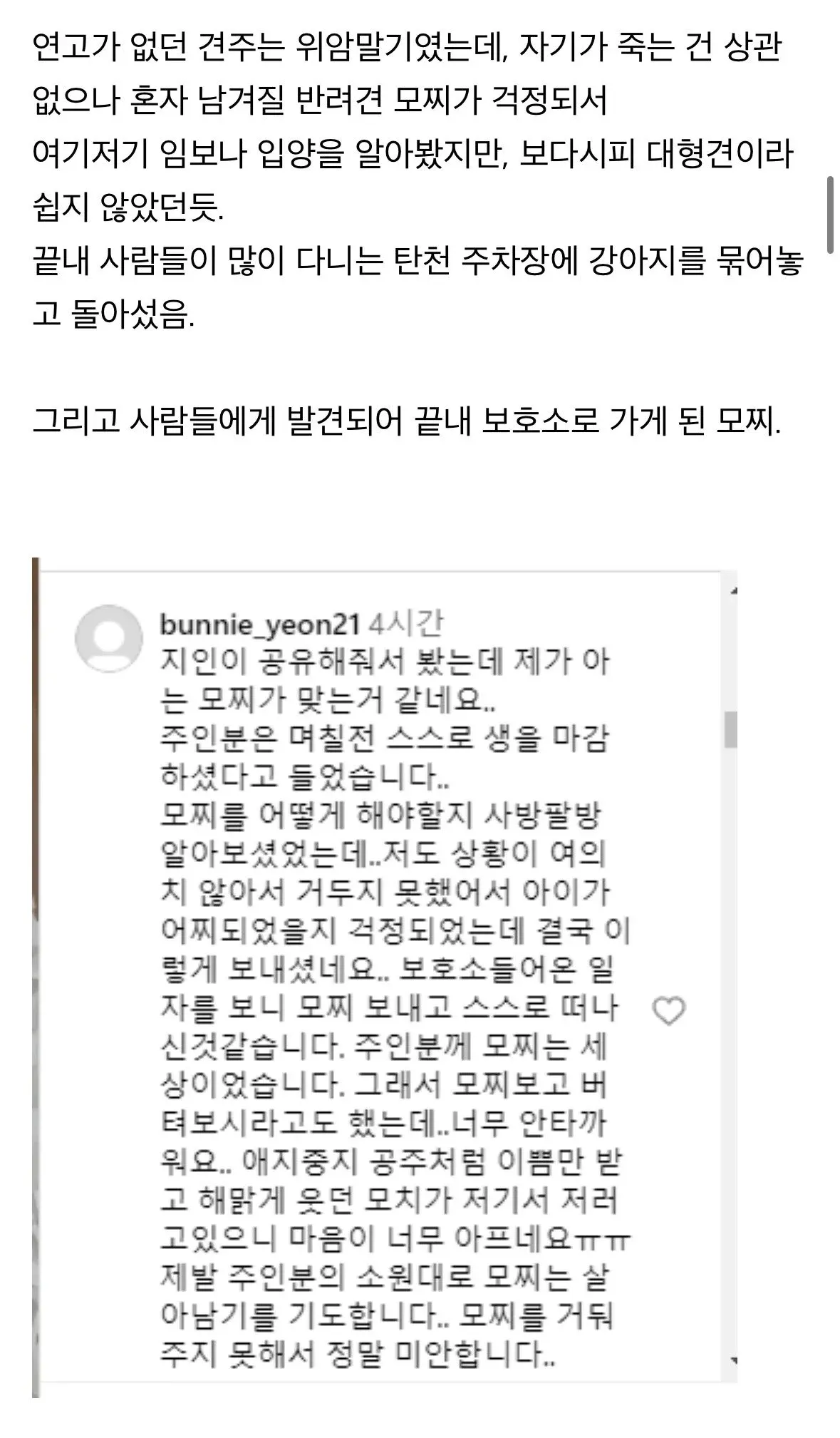 탄천주차장 버려진강아지 후기