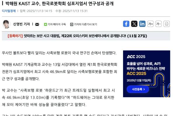 https://zdnet.co.kr/view/?no=20251113140238 6개월 전에는 역시 카이스트에서 국제 4족보행 자율이동 장애...