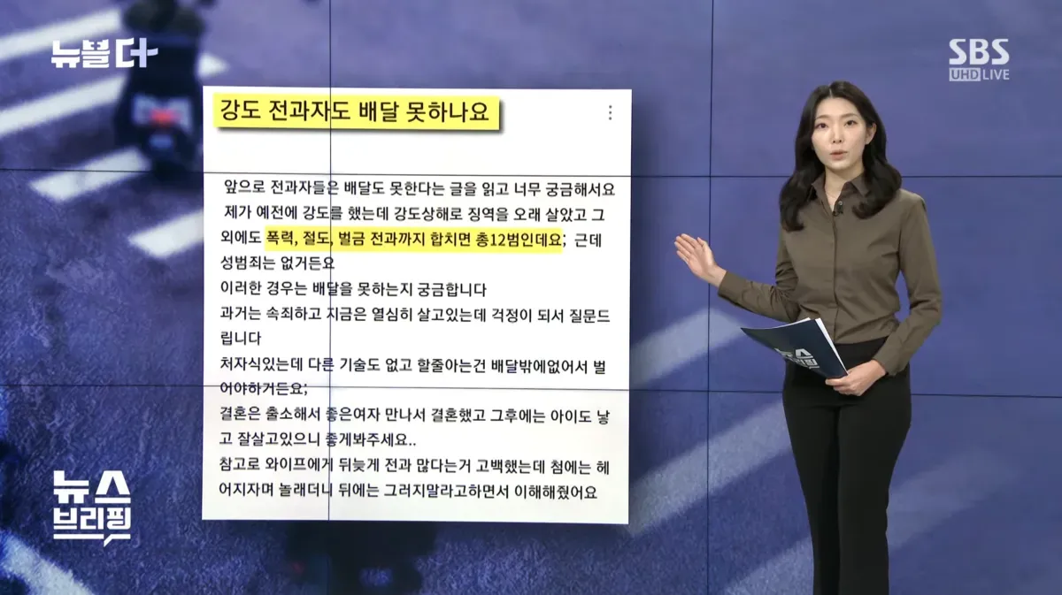 솔플마스터 9일 전 2025-11-21 13:43:18 강력범죄 전력있으면 배달 업종 취업 제한 이슈추척 정치 / 경제 / 사회 앞으로 강력범죄 전력이 있으면 배달업종 취업이 제한된다고 합니다. 배달 업체에서 범죄 확인되어도 이를 어길시 과태료가 부과된다고 하네요. 이건 진작에 좀 하자고 하니까... 첨부파일 4 image.png.webp 55.6KB 1 image.png.webp 51.3KB 0 image.png.webp 52.1KB 0 image.png.webp 67.6KB 1