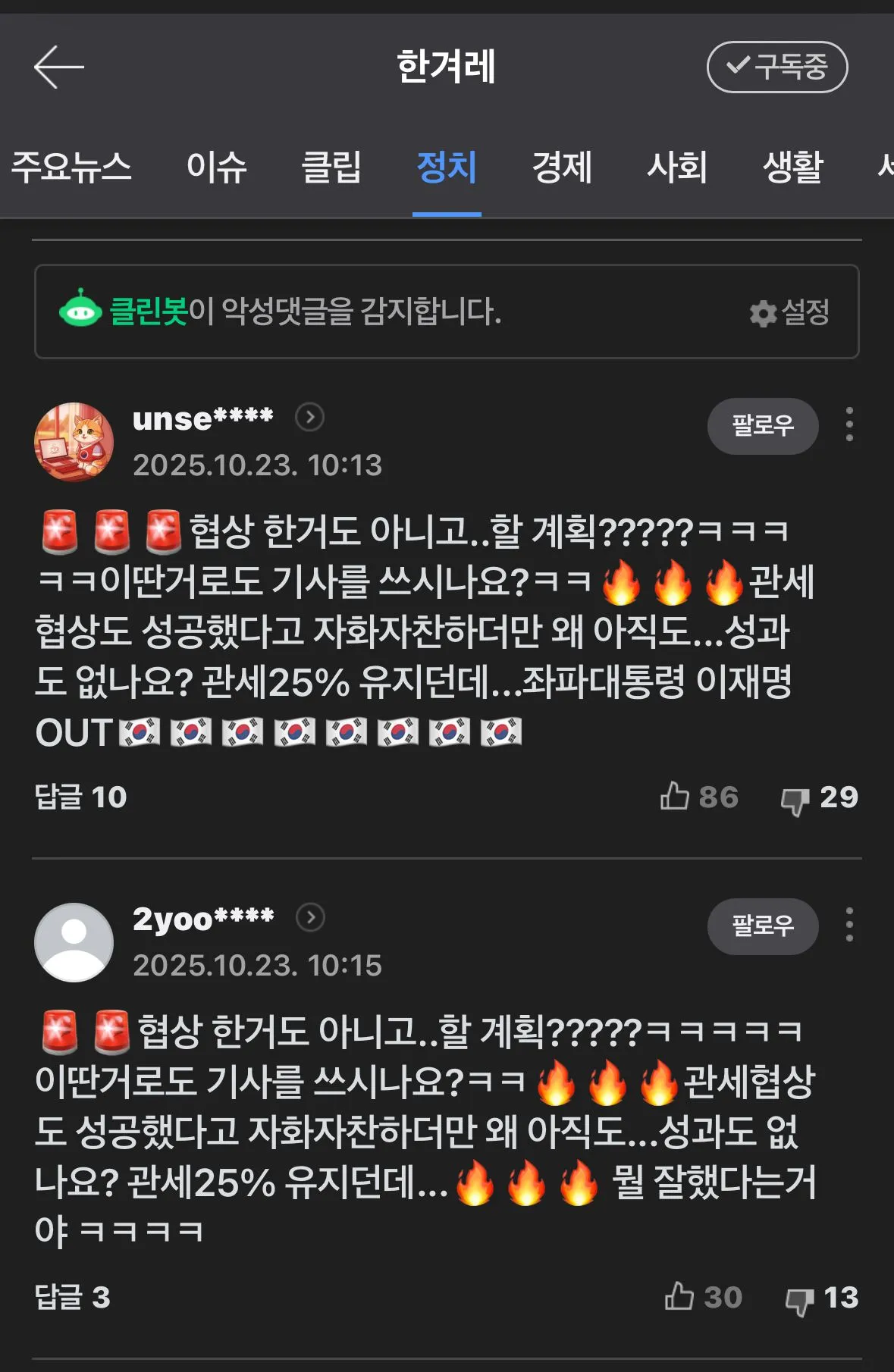 저런  흔한 2찍의 댓글이 따로 존재한다면