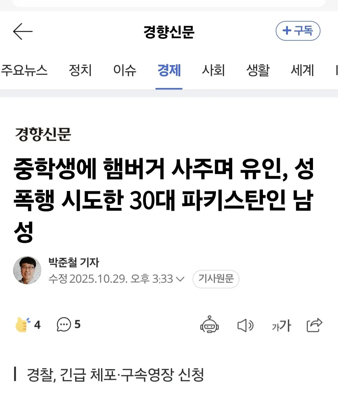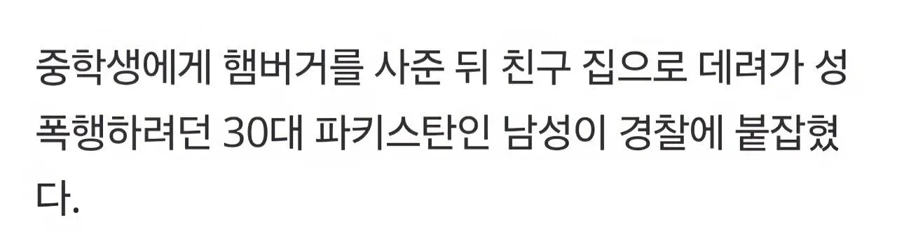 파키스탄 난민신청자 한국인 중학생 성폭행 시도