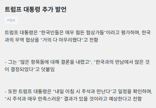 트럼프:한국인들 협상 x같이 한다