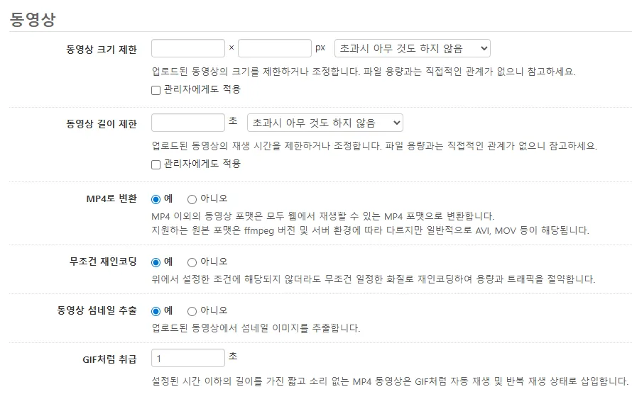 여기까지 하고나면 라이믹스 들어가서 동영상 탭을 살펴보자. 그러면 이제 mp4변환과 인코딩 부분에 선택이 가능하게끔 되어 있다. 언능 변경해주자.
