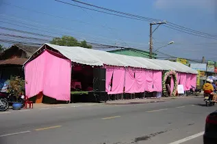 이렇게 길가에 분홍색 -_- 천막을 치고 여기서 결혼식을 합니다. ( 흰색은 장례식입니다 )